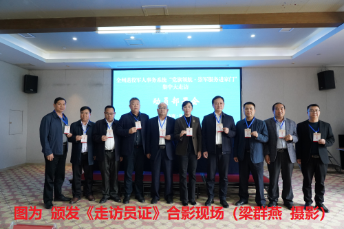 会上宣读了《黔东南州退役军人事务系统“党旗领航·崇军服务进家门”集中大走访活动方案》,并颁发了《走访员证》。梁娅局长提出了三个方面的要求,一是要统一思想,充分认识开展大走访活动的重要意义;二是要突出重点,准确把握大走访活动的着力点;三是要精心组织,确保大走访活动取得实效。