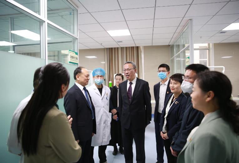 调研组一行参观了第一师医院急诊科、援友之家(援疆馆)、医疗保障中心、口腔科及介入诊疗中心,对医院近两年的飞速发展表示赞赏。陈军书记在门诊口腔科,对口腔科建设规模和先进设备给予充分肯定,并说:“口腔是人体的重要器官,口腔健康是守好全身健康的第一关。要利用好援疆资源,让更多的南疆百姓受益。”在介入中心陈军书记说:介入中心有极大的发展空间,期待介入的专家团队把介入中心做大、做好、做强,推动医院特色学科发展。