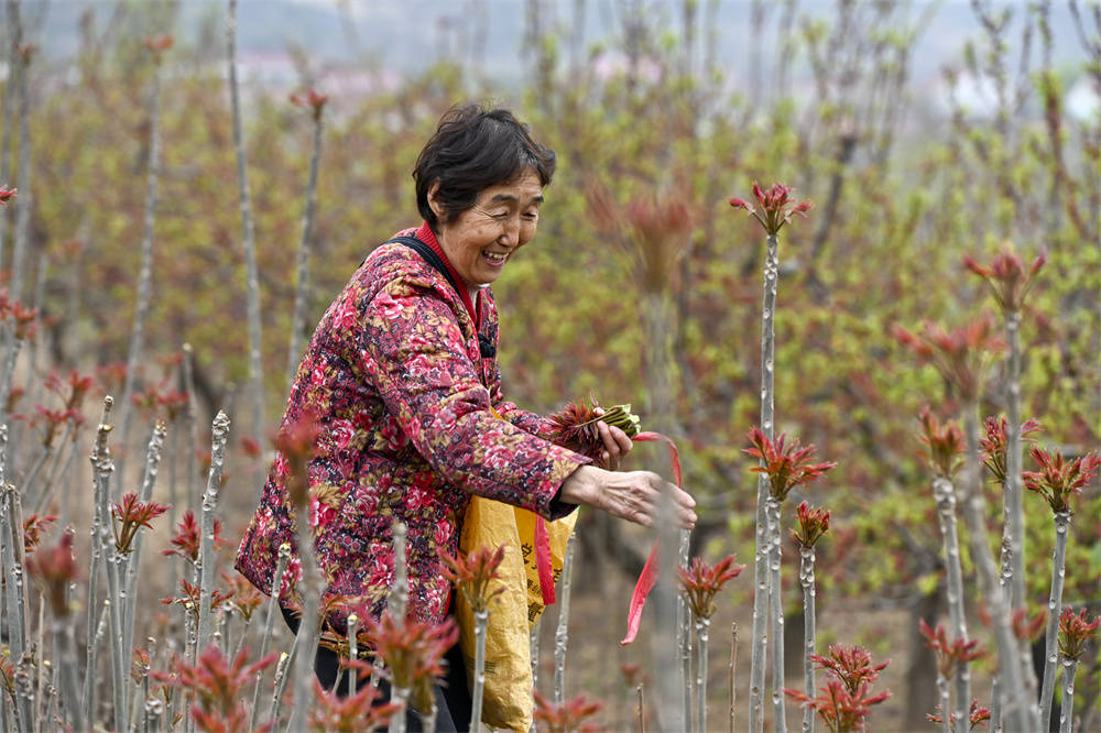 眼下,正是韩阳镇红油香椿大量上市时节,色泽红润、香味浓郁的香椿成为当地特色产业,受到市场青睐。在临风线、黄河一号旅游公路两侧的香椿市场,村民将刚刚采摘的新鲜香椿进行保湿保鲜,打包装车,一派繁忙景象。