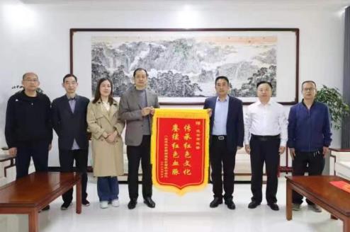 各单位代表及来宾踊跃发言,神钲书院安秋生院长作总结发言,韩石磊代表八路军新四旅后人将旌旗赠送给武安市政协。韩石磊与武安市政协主席马晓斌、副主席杨建华亲切交谈。(图文:张海江、黄涛)