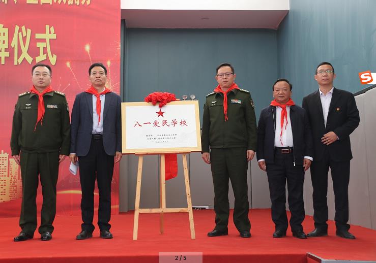 4月12日,“八一爱民学校”揭牌仪式在九团第二中学举行。新疆生产建设兵团第一师人武部大校政治委员曹卓、九团党委副书记、团长刘光辉、阿拉尔市人武部上校政治委员薛俊亮、师市教育局党组书记、局长凤树峰出席揭牌仪式。仪式由教育局局长凤树峰主持。九团第二中学年级学生、家长代表及教师代表共计300余人参加此次揭牌仪式。