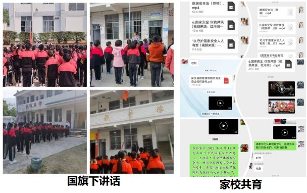 永新中心校创新宣传形式,丰富宣传内容,以“4.15”全民国家安全教育日宣传活动为契机,将其与普法强基补短板专项行动同步推进、融合开展。活动以防性侵、防校园欺凌、防打架斗殴、防非法网络贷款、防电信诈骗及珍爱生命、防范安全风险等为主题,重点宣传《国家安全法》《网络安全法》《反恐怖主义法》《道路交通安全法》《义务教育法》《未成年人保护法》《预防未成年人犯罪法》《反家庭暴力法》等法律知识,充分利用国旗下讲话、主题班会、黑板报、红领巾广播站、家长微信群、粘贴宣传标语等多种方式,营造普法宣传氛围,切实抓好国家安全相关知识的宣传,厚植师生法律意识入脑入心;通过开展爱心送法、法治宣传进校园、普法知识在线专项答题、观看普法微视频、“小手牵大手、大手拉小手”家校共育等多种渠道,引导师生及学生家长树牢总体国家安全观,切实提升全民国家安全意识和法治素养。(永新中心校:杨云庆)