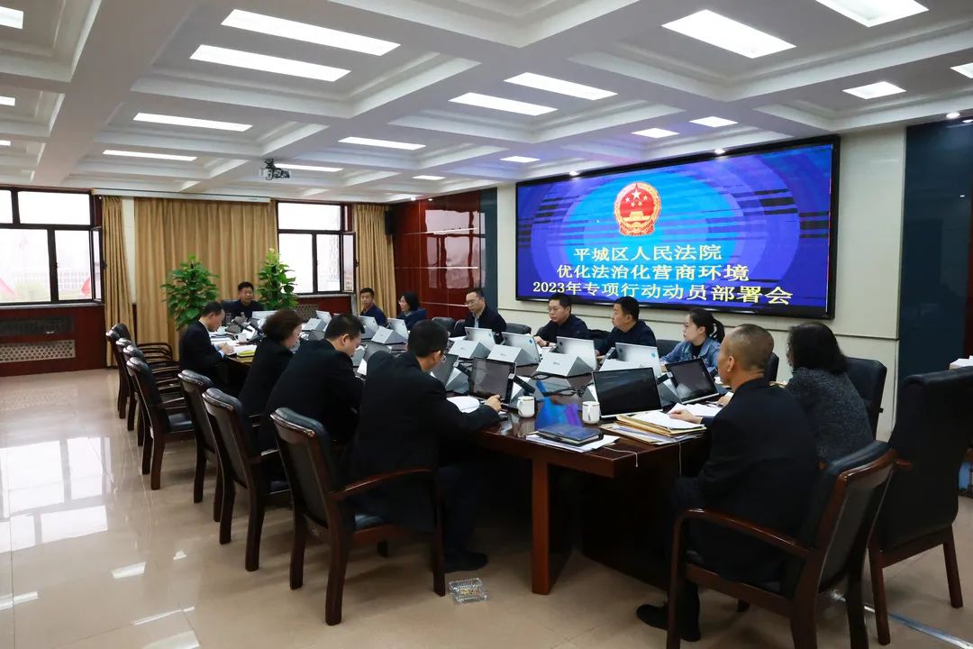 会议安排部署了2023年平城区人民法院优化法治化营商环境的具体工作,在会议上解读了《大同市平城区人民法院优化法治化营商环境2023年行动计划实施方案》,并展开讨论学习,深刻领会优化法治化营商环境的重要性,明确本次专项行动的目标任务、行动计划、时间步骤、工作要求等事项。同时下发了《大同市平城区人民法院2023年优化法治化营商环境工作任务分解》,把优化法治化营商环境的工作任务细化到每一个庭室,并对每个月、每个季度需要上报的台账、报告、典型案例等作出具体要求。