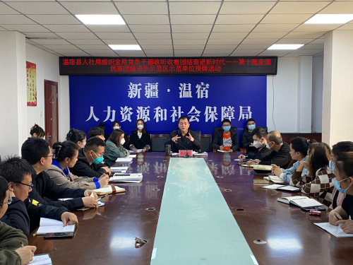 2023年5月3日,新疆阿克苏地区温宿县人社局组织全局干部收听收看了团结奋进新时代——第十批全国民族团结进步示范区示范单位授牌活动,活动全方位、多层次、立体式就铸牢中华民族共同体意识展开宣传教育,在全局干部中引发了强烈热议。
