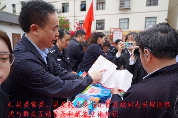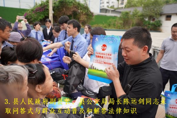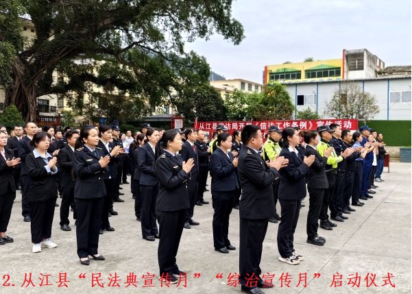 活动当天,到现场参与活动群众近2000余人,共播放法治音频5个,发放《民法典》《宪法》《反有组织犯罪法》、电信诈骗、养老诈骗、交通安全等宣传手册8000余份,发放宣传雨伞、宣传围腰、宣传口袋等宣传物品2000余份。活动现场,还采取问答式向群众互动普及和解答法律知识,现场参与互动群众近100人。同时,从江县“民法典宣传月”“综治宣传月”启动仪式暨法治教育普及集中宣传活动在各乡镇(街道)同步举行,发放宣传资料3万余份,受教育群众5万余人。