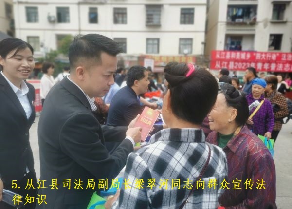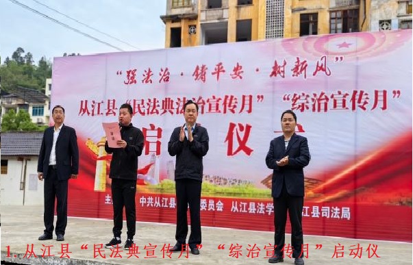 5月13,从江县在县城古榕广场隆重举行“民法典宣传月”“综治宣传月”启动仪式暨法治教育普及集中宣传活动,活动由县委政法委、县法学会、县司法局联合主办,县人民政府副县长、县公安局局长、县法学会副会长陈远剑作动员讲话,县委常委、县委政法委书记、县法学会会长付茂斌宣布活动正式启动。县直各单位、丙梅街道、群众代表等共500余名干部群众参加了启动仪式。