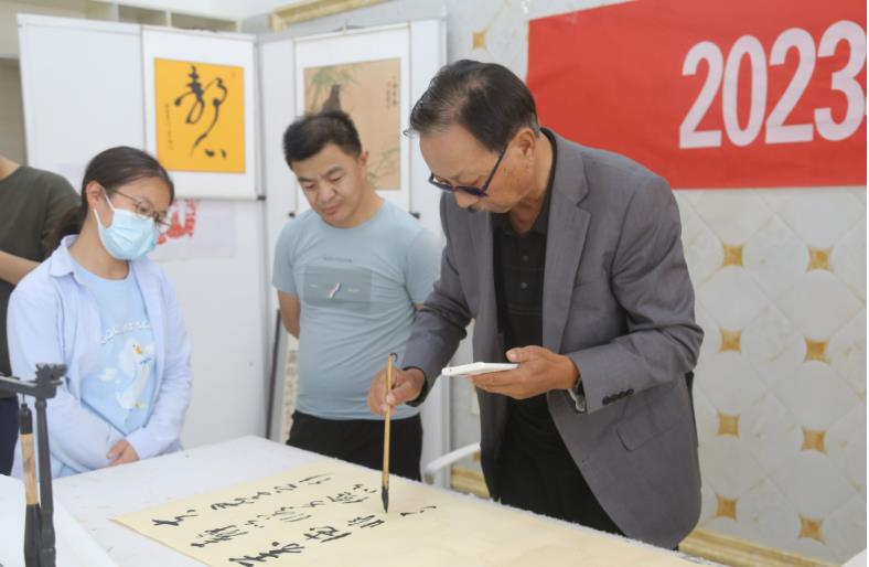 为进一步传承弘扬中华民族的书法艺术,丰富居民群众的精神文化生活,营造团镇和谐文化氛围,5月17日,新疆兵团一师七团文联邀请中国美术家协会会员张新郎,兵团书协会员林庭池等知名书法家到七团新时代文明实践所书画室举行书画交流笔会,书画大咖欢聚一堂,展示交流书画作品和创作心得。