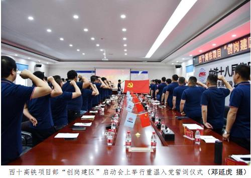 日前,中铁十八局集团西十高铁项目部举行“创岗建区”启动会。会议上宣读了“创岗建区”活动实施方案,并举行“红旗责任区”授旗、“党员先锋岗”授牌、重温入党誓词仪式,吹响西十高铁项目建设集结号。