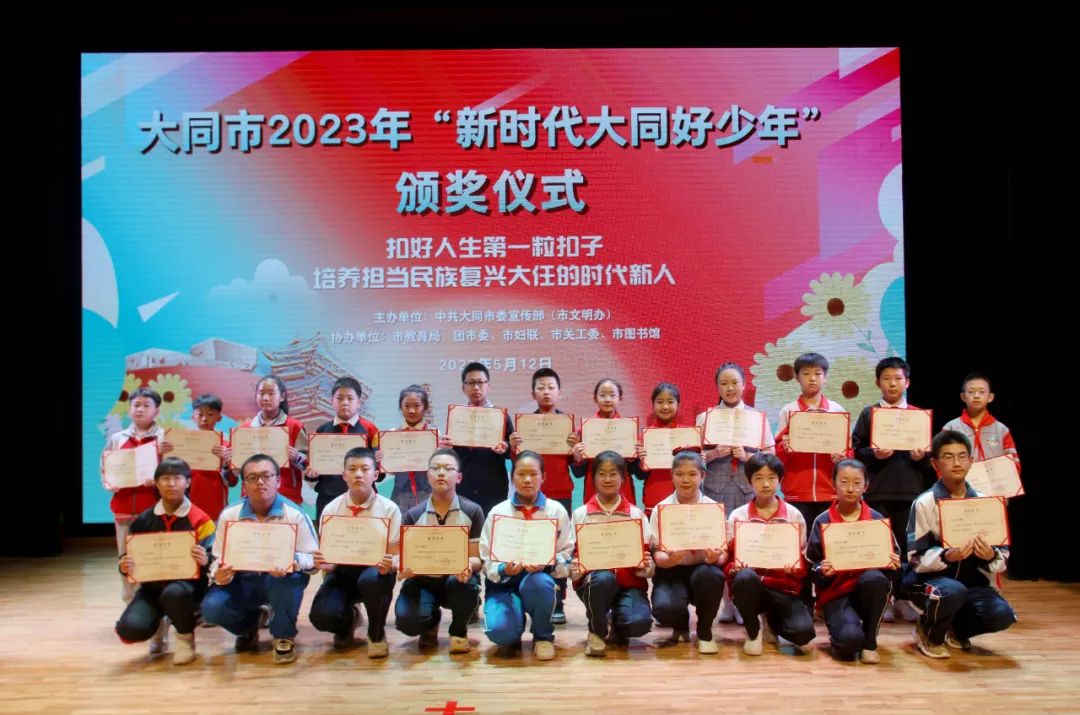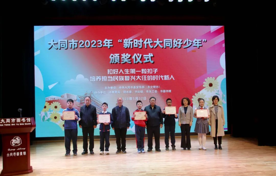 5月12日,2023年“新时代大同好少年”颁奖仪式在山西省大同市图书馆举行。来自全市各县区和市直学校233名同学被评为“新时代大同好少年”先进典型。