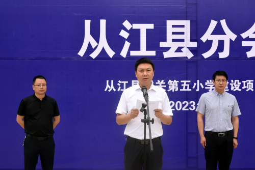 5月26日上午,从江县城关第五小学项目正式开工建设,从江县委常委、副县长高瑞宣布项目开工。县人民政府副县长唐雯主持开工仪式。县教育和科技局党组书记、局长韩洪宇作县城关第五小学建设项目介绍。县教育和科技局班子成员、相关股室负责人和项目施工、监理单位负责人参加开工仪式。