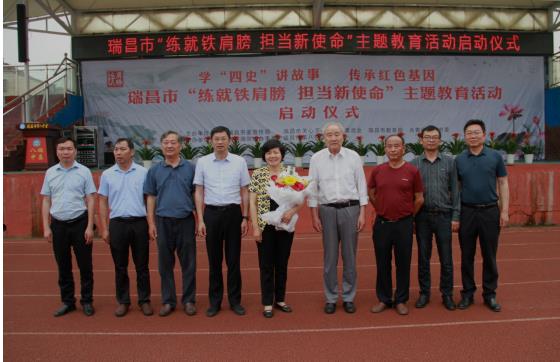 5月25日,瑞昌市“练就铁肩膀,担当新使命”主题教育活动启动仪式在市第八中学举行,市委常委、宣传部部长程世贵出席活动并宣布启动仪式开始,市关工委执行主任朱汉盛现场致辞。