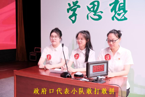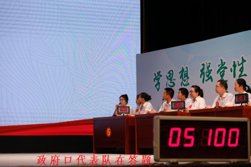 当天的竞赛分个人必答题、团队必答题、抢答题和选答题,在个人和团队必答题中政府口小队发挥出色,将这两项的分数全部“收入囊肿”。到了抢答题项目,抢答项目精彩且刺激,政府口小队稳扎稳打,未丢一分,逐渐与其他小队拉开差距。选答题是风险与收益并存的题目,题目分20、30、40板块,选择并答对,取得相应分数,答错扣掉相应分数。政府口小队虽然只需答对20分的题目就可进入到决赛,但段钰威敢打敢拼,选择了40分的题目,并完美回答了该题!