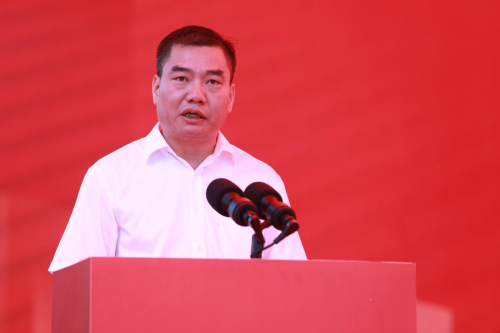 “开工!”江西省委常委、市委书记李红军,副省长史可等与会领导推杆,宣布项目正式开工。