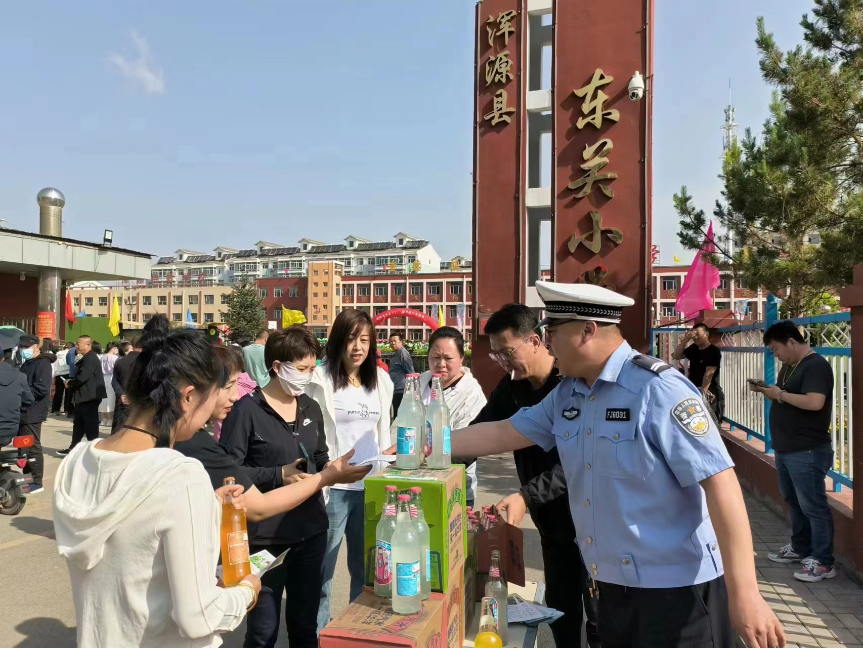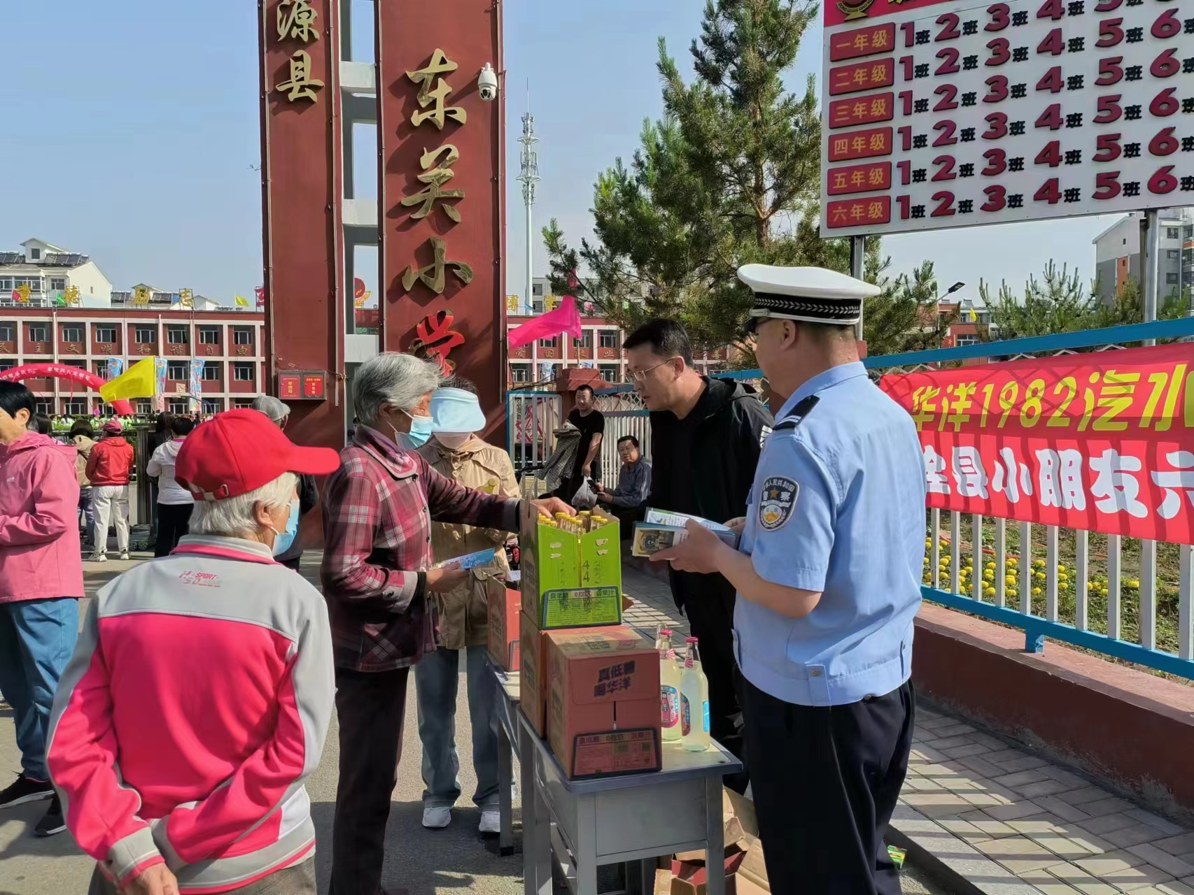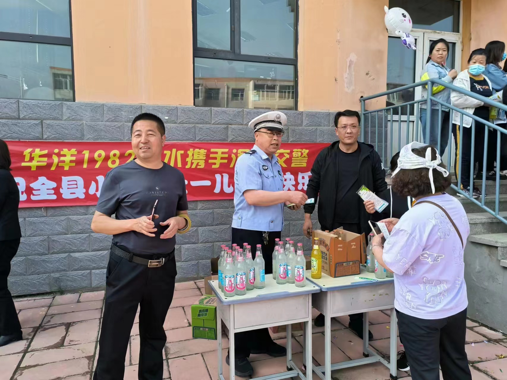 在东关小学门前,指挥中心民辅警也强化了对该校门前车辆的引导,确保学生安全、有序进入校园。同时,宣传民警联合华洋汽水代理商,在县东关小学、凯德世家小学开展“学交规、领汽水”主题宣传活动。通过散发宣传材料、面对面安全提示,让学生家长明白并认识到在接送学生过程中随意横穿马路、不遵守交通信号灯、违反规定乱停乱放、超速、超员等行为的危害性,希望家长为学生做好表率,共同提高自我防护意识。同时要坚决抵制超速、超员、疲劳驾驶、酒后驾驶等严重交通违法行为,齐心协力,共同为学生上下学“铺”一条安全之路。