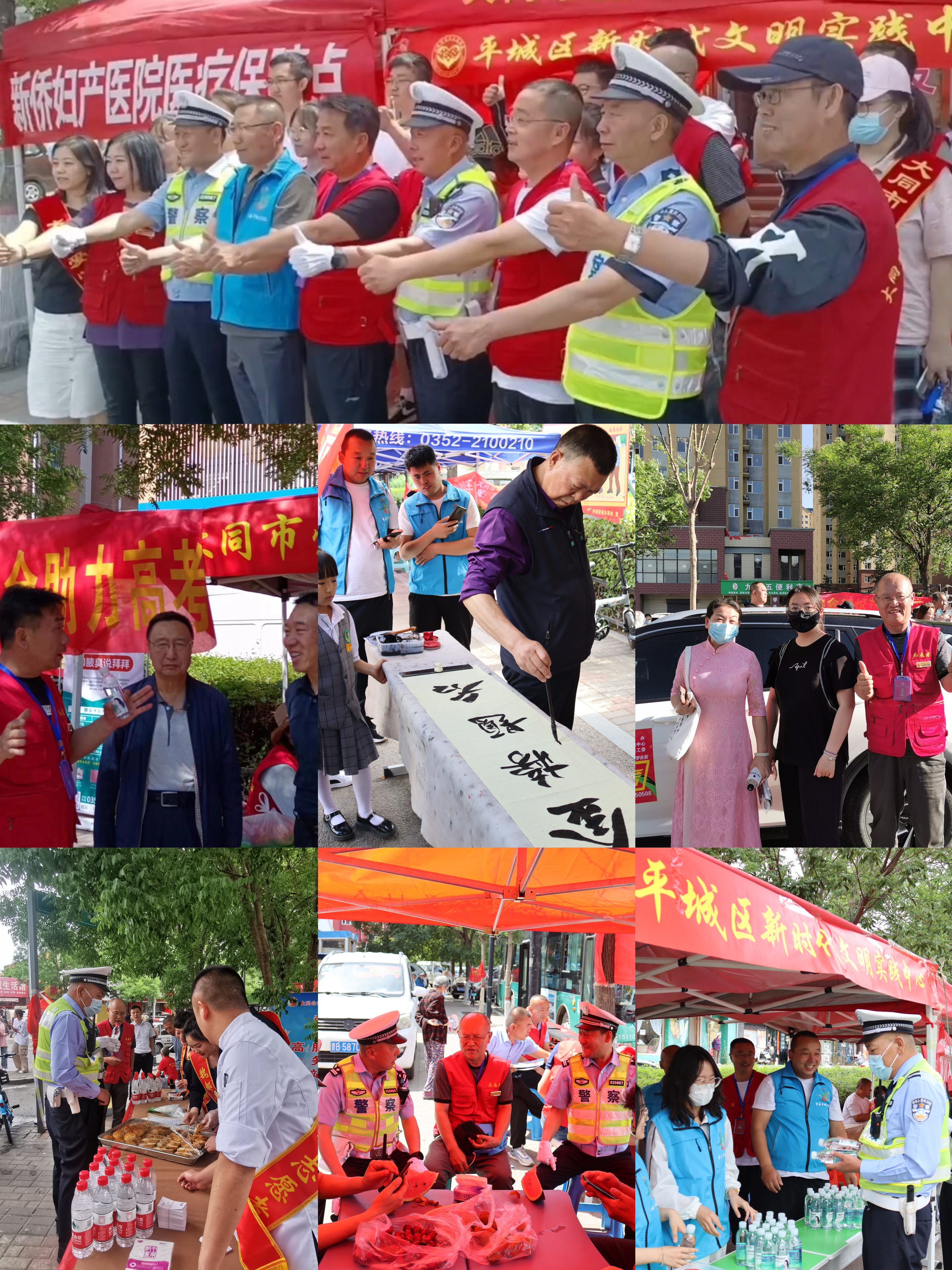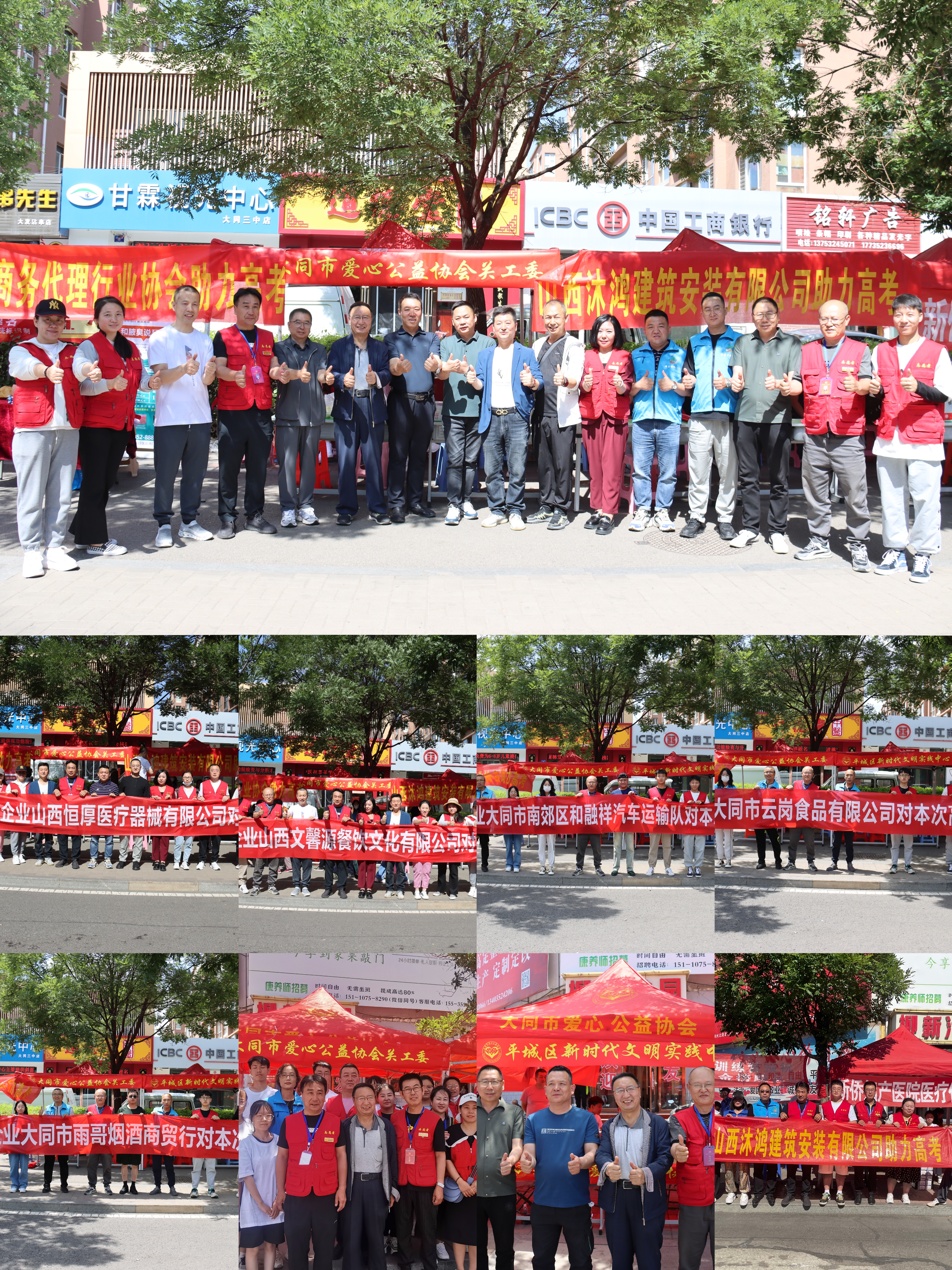 大同市爱心公益协会关工委携手平城区文明办、平城区新时代文明实践中心,联合大同新侨妇产医院、大同市商务行业代理协会、山西恒厚医疗器械有限公司、大同市文馨源餐饮文化有限公司、大同市雨哥烟酒商贸行、大同市金长城建筑工程有限公司等爱心企业,分别在大同一中、大同三中设立服务站,开展爱心助考护航公益活动。