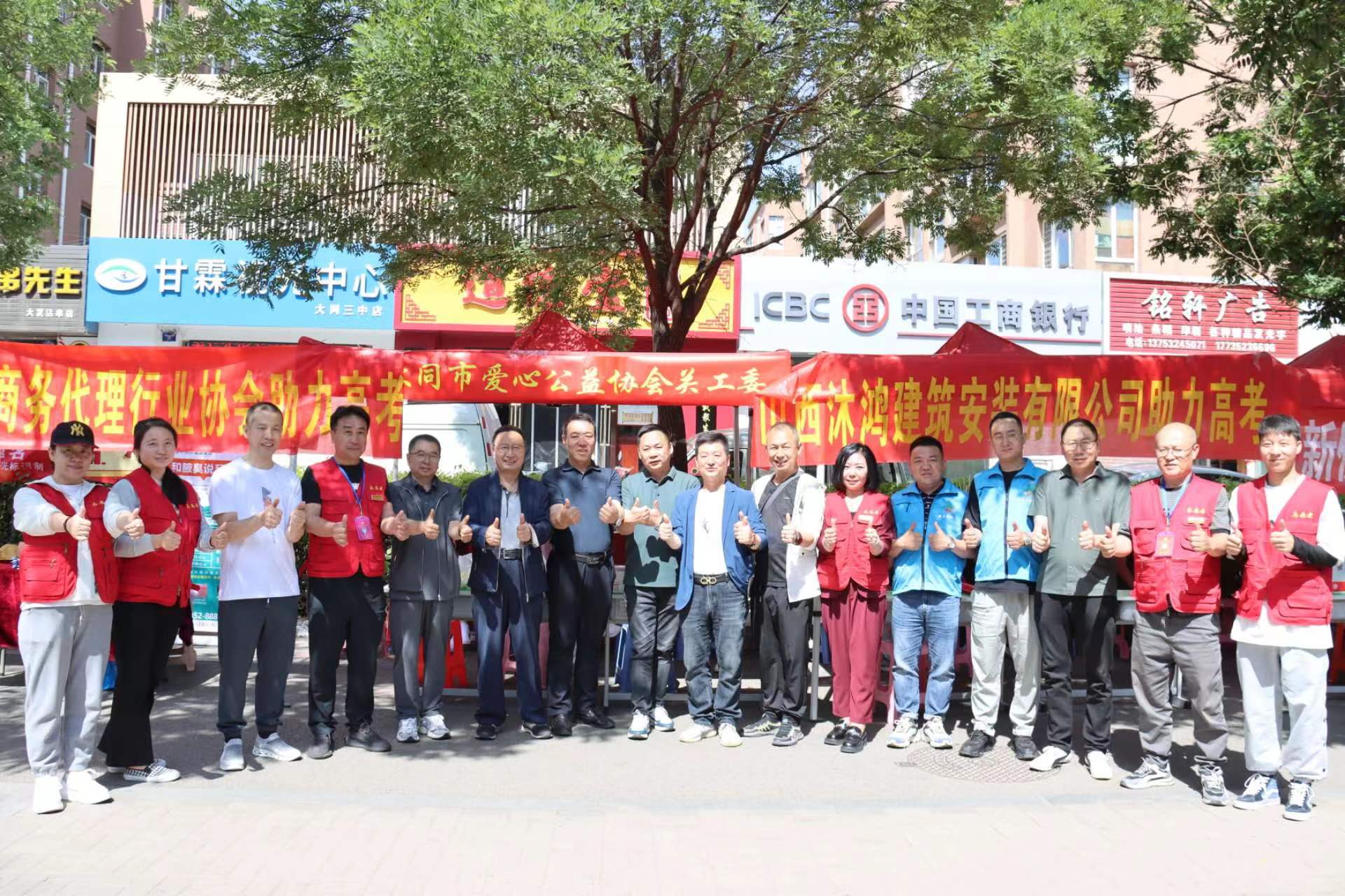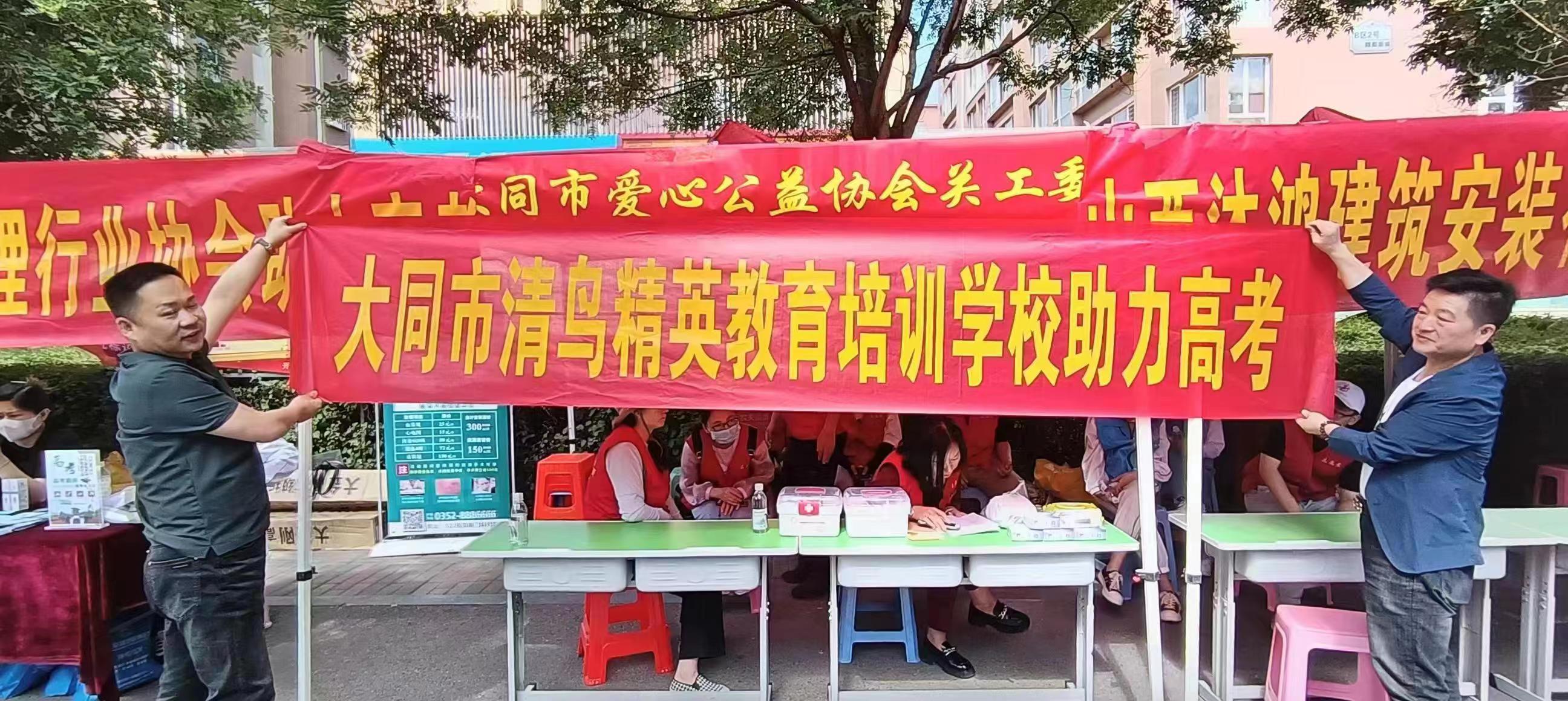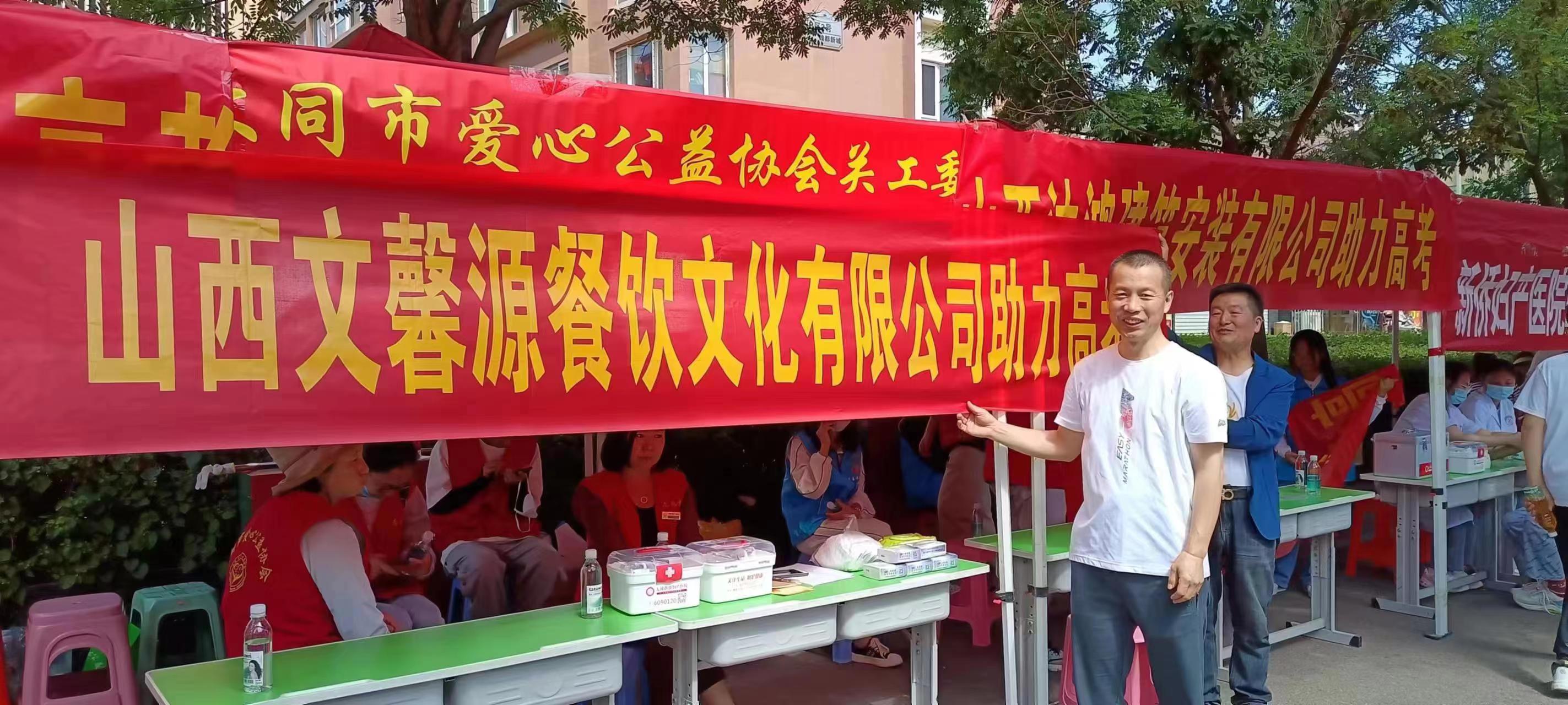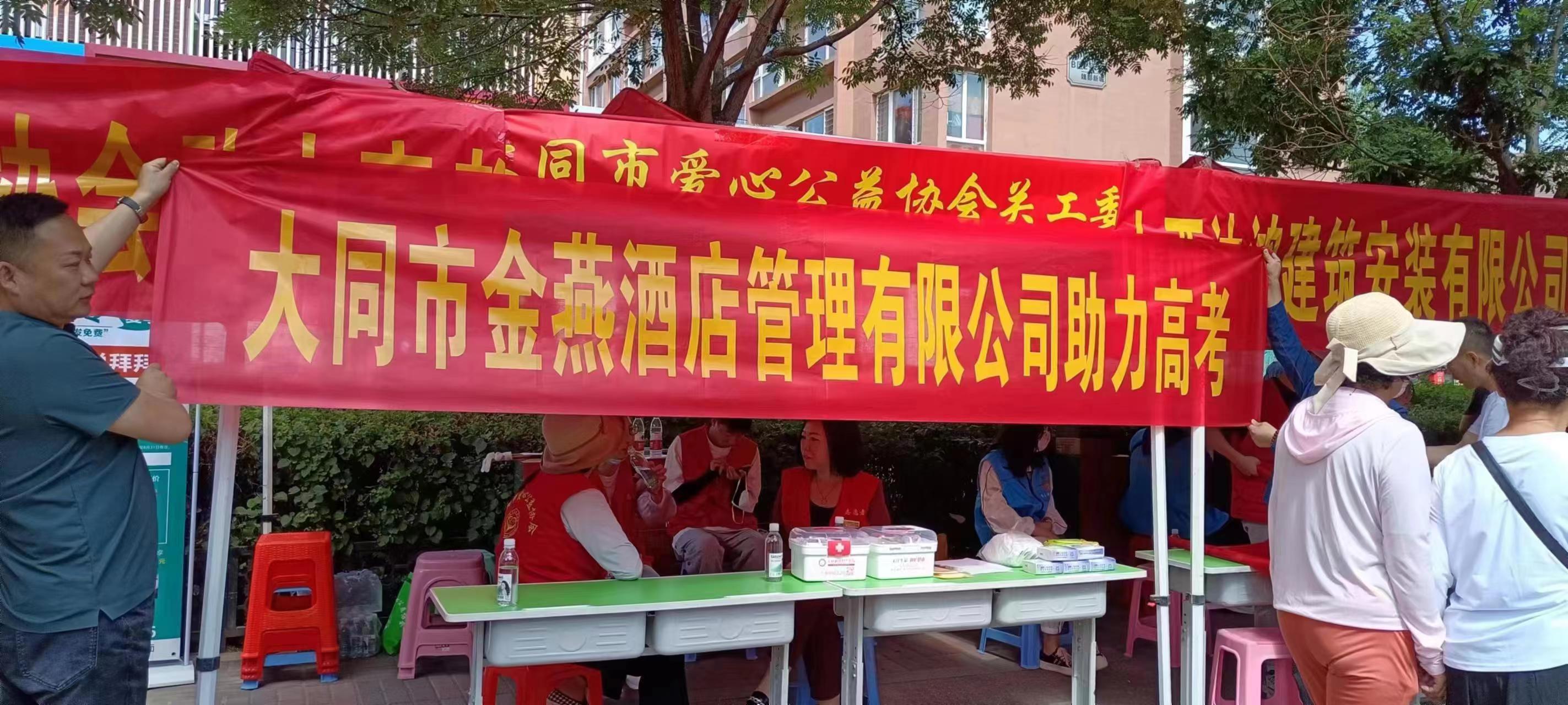 大同市爱心公益协会关工委负责人吴晓东表示,由山西恒厚医疗器械有限公司、大同市新侨妇产医院、大同市商业代理协会、大同市云冈食品有限公司、大同市雨哥烟酒商贸行、大同市云冈区和融祥汽车运输队、大同市金长城建筑工程有限公司、金榜培训学校、誉亲园幼儿园、大同市清鸟精英教育培训学校、大同市金燕酒店管理有限公司、山西沐鸿建筑安装有限公司、山西文馨源餐饮有限公司等多家爱心企业助力高考已经是第二年了,活动现场,为所有的人提供医疗保障,为服务高考的人群赠送慰问品,为志愿者提供工作餐。正是因为他们的大爱,让活动内容变得更充实,让活动现场更加祥和。