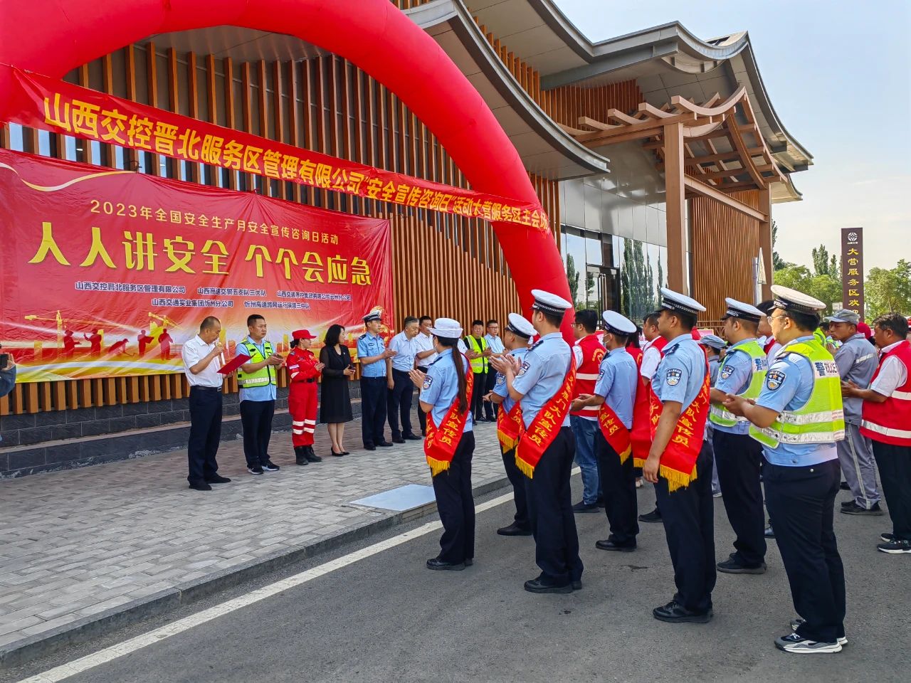 6月16日,高速五支队三大队联合山西交控晋北服务区管理有限公司、山西交控养护集团有限公司云州分公司、山西交通事业集团忻州分公司等部门,通过宣誓、签名、讲授应急知识、发放宣传页等多种形式,在大营服务区开展“人人讲安全 个个会应急”主题安全宣传咨询日活动,进一步提升了群众交通安全意识,有效防范了道路交通事故。活动结束后三大队副大队长赵晋廷接受媒体采访。