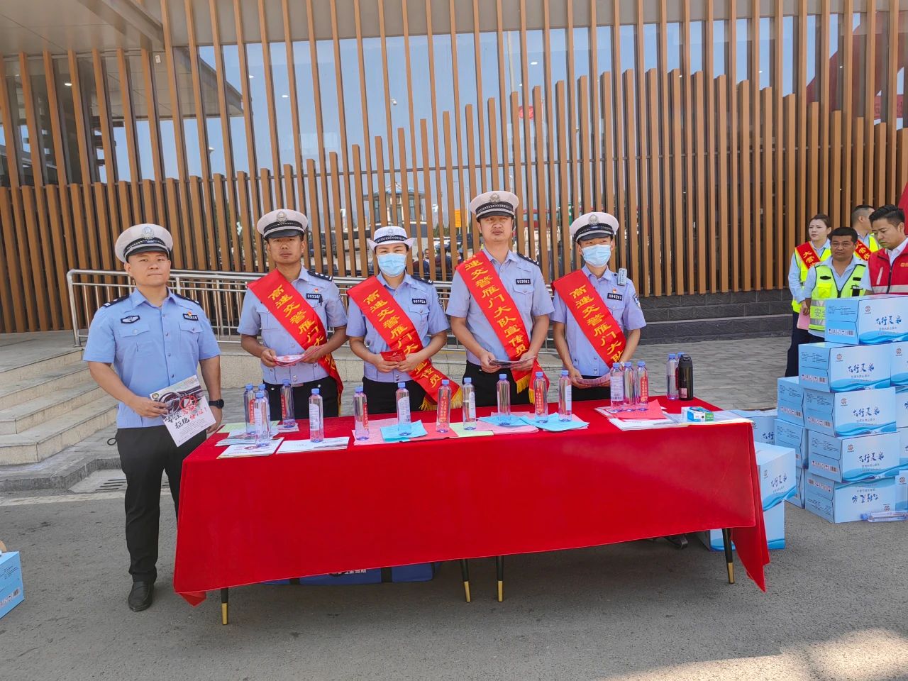 6月16日,高速五支队六大队民警联合忻州高速公司分别在奇村服务区和芦芽山服务区通过悬挂条幅,对过往司乘人员发放安全宣传单页的形式开展安全生产月宣传活动。