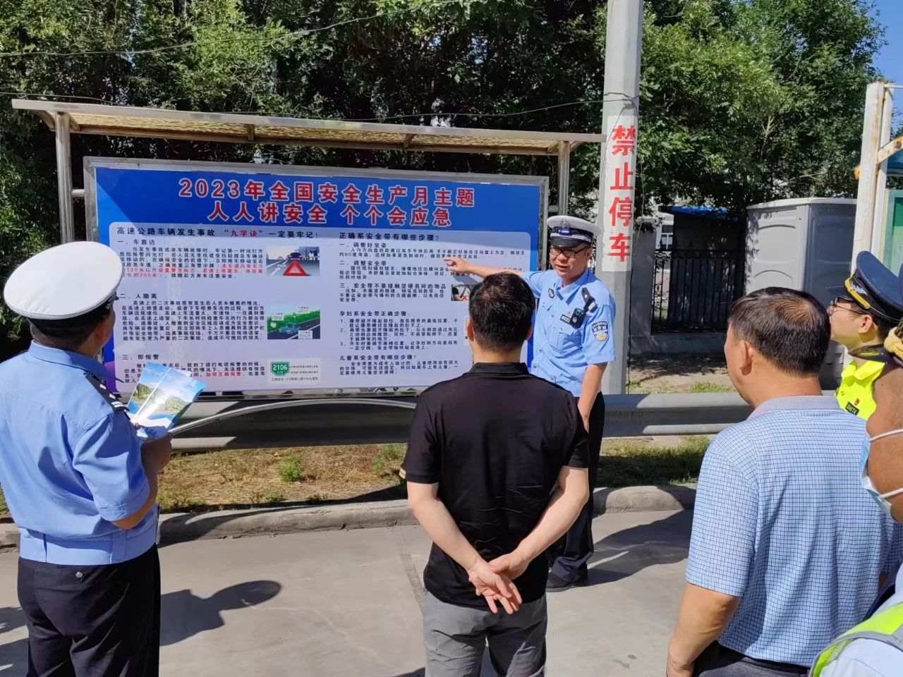 在6月16日安全宣传咨询日,高速五支队二大队深入辖区沿线西庄村,通过发放交通安全宣传资料、张贴海报和条幅、现场讲解等形式开展交通安全宣传教育活动。