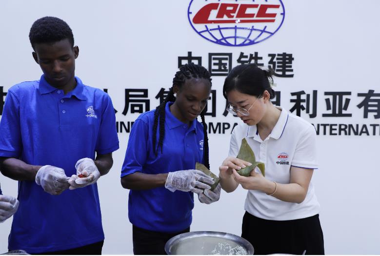 中铁十八局集团尼日利亚有限公司中外员工迎端午包粽子(邢纪亮 摄)