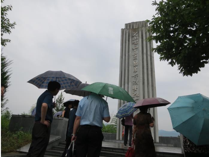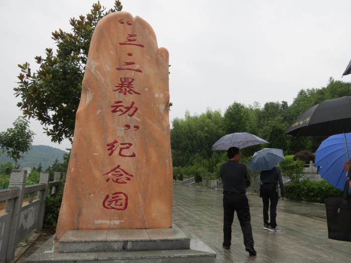 为铭记历史,缅怀先烈,2013年县乡联合投资560万元、占地90余亩,建成英山县“三二”暴动纪念园,园内安葬包括“三二”暴动、解放战争、抗美援朝牺牲的烈士258位,己成为重要革命传统教育基地。大家仔细聆听,深深沉思。县诗词协会会员黄朝度当即赋诗:“伫立碑前我动情,时空穿越缅先人。鼻中似嗅硝烟味,耳畔犹闻呐喊声。能将热血荡腐朽,敢付头颅换乾坤。漫步台阶松柏翠,无边敬仰寄英灵。”