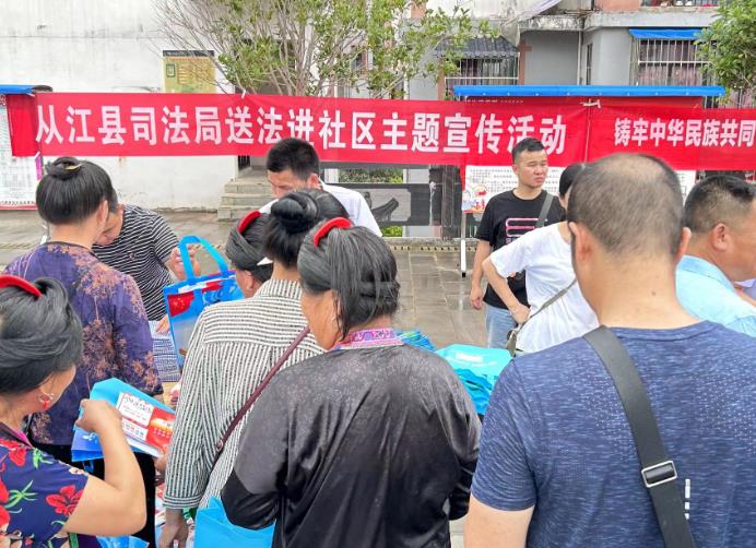 为扎实推法治教育普及行动,进一步增强社区群众的法治意识,让群众学会利用法律武器进行自我保护,养成知法、懂法、守法、用法的行为自觉。近日,从江县司法局联合社区矫正、安置帮教等部门到贯洞镇贵运社区举办了以“美好生活 民法典相伴”为主题宣传活动。
