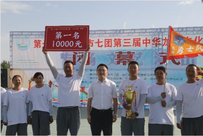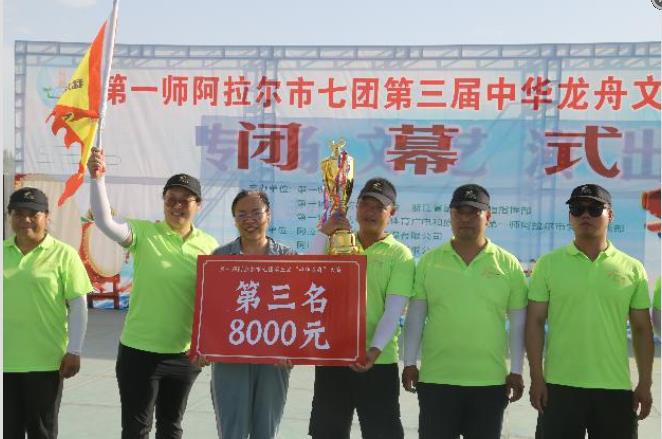 随着领导为获奖龙舟队伍颁发奖杯及奖牌,七团第三届“中华龙舟”文化旅游节圆满落幕。