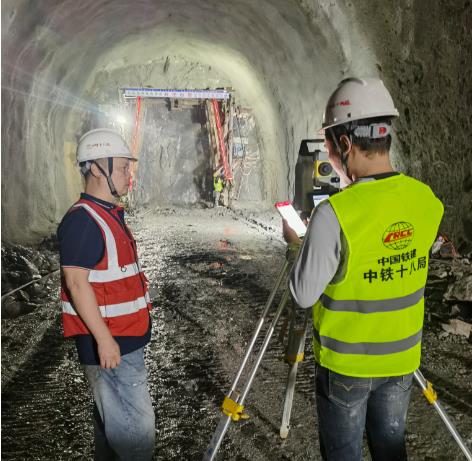 中铁十八局集团建设者在全国第二、西北第一长的双洞单线高铁隧道——西十高铁秦岭马白山隧道4#斜井精心测量(汤琦 摄)