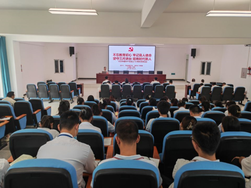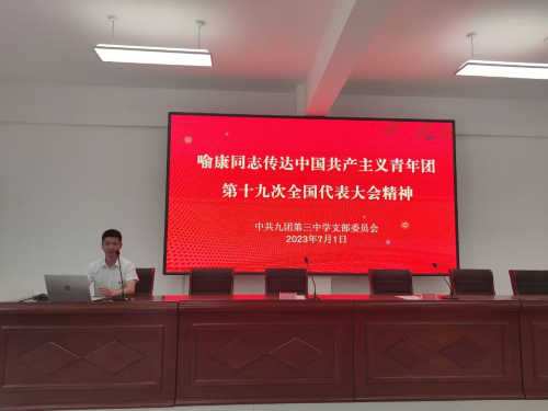 活动在庄严的升旗仪式中拉开序幕,所有人员整齐列队,齐唱国歌,满怀热情为党和祖国献礼。随后,学校党支部副书记、副校长刘智瑜带领全体党员重温入党誓词,并为大家上了“不忘教育初心 牢记育人使命 坚守三尺讲台 培育时代新人”主题党课。此外,全体党员还在现场向组织委员严伟龙老师缴纳了党费,学校还为党员教师发放了政治生日贺卡。最后,团十九大代表、九团三中团总支书记喻康传达了中国共产主义青年团第十九次全国代表大会精神。