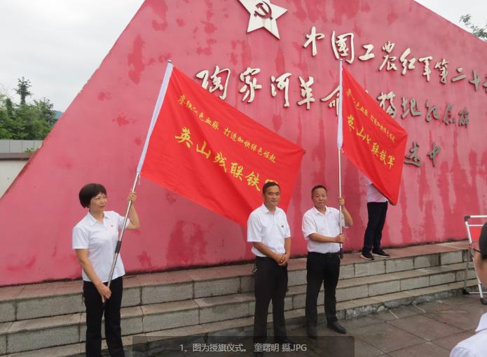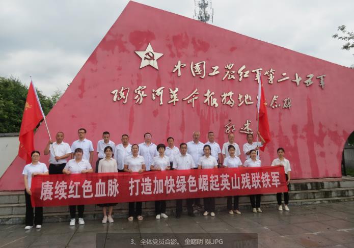 袁学武向残联机关党支部和残协主席代表授予“赓续红色血脉、打造加快绿色崛起英山残联铁军”红旗;带领全体党员进行打造英山残联铁军宣誓。并带领全体党员参观红二十五军纪念馆,接受革命传统教育。