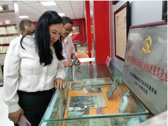 展柜里的一本书、一封信、一张报纸、一个党费证……就是一个一个故事,曹老师详细介绍了最先到阿克苏工作的10名共产党员以及他们的故事,党员干部重温老一辈革命精神,备受启发和鼓舞。工信局副局长再努热木·亥麦尔说:“真的,很震撼,作为一名少数民族党员干部,生在阿克苏,长在阿克苏,先辈们发扬艰苦奋斗、民族团结的精神,在这篇土地上生根发芽,不断传承,没有他们就没有今天阿克苏”。