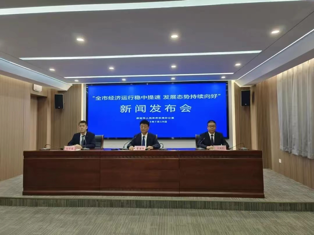 保定市统计局党组成员、普查中心主任、新闻发言人董海峰致辞中讲到:今年以来,随着稳增长政策持续显效发力,生产需求两端不断加快恢复,全市经济发展势头逐月向好,多数经济指标增速高于全国、全省。突出的亮点主要表现在以下三个方面: