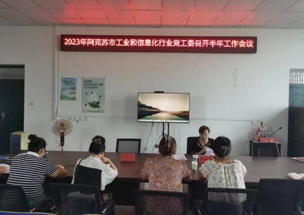 为进一步推进工业和信息化行业党工委非公企业党建工作,7月21日,阿克苏市工业和信息化行业党工委组织各党支部书记召开半年党建工作会议,由行业党工委书记胡传宝同志主持,工业和信息化局全体党员干部列席参会。