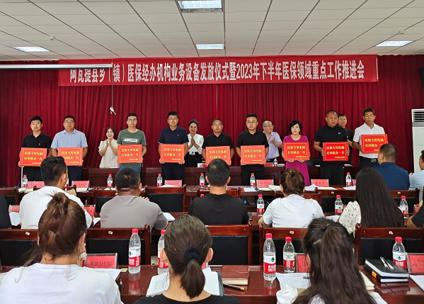 为切实打通医保服务群众“最后一公里”,不断满足参保群众日益增长的医保服务需求,7月25日,阿瓦提县召开了乡(镇)医保经办机构业务设备发放仪式暨2023年下半年医保领域重点工作推进会。政府副县长迪丽拜尔·艾山出席并参加了会议,县医局党组书记、副局长林强主持会议,各乡(镇)分管医保的领导和医保经办机构负责人;县域定点医疗机构40人参加了会议。