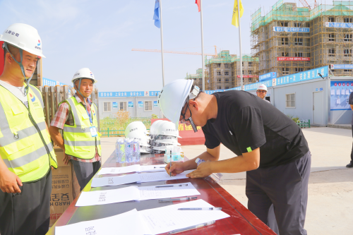 7月27日,师市建筑工程质量安全现场会在九团2022年公共租赁住房建设项目(二期)召开,住建局质量监督站、经开区投资服务局、城投公司、新鑫公司、科教集团、城建处、各建设单位、施工单位、监理单位负责人共100余人参加会议。