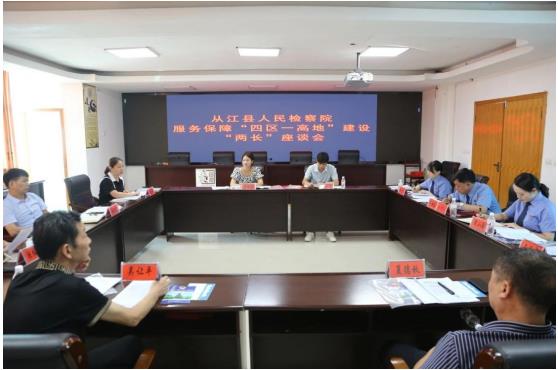 为进一步畅通检察机关与民营企业沟通联系渠道,营造安商惠企的法治营商环境。7月27日,从江县检察院同县工商联召开服务保障“四区一高地”建设“两长”座谈会,“两长”分别为检察长、董事长。县人民检察院党组书记、检察长雷邦华、县工商联副主席唐琪参加座谈会。