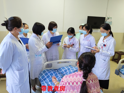 义诊活动前,袁卓珺教授团队到妇产科开展带教查房,听取工作人员的汇报患者病情后,执简驭繁,深入浅出,从患者症状、体征、病机分析、遣方用药等方面抽丝剥茧地一一给予意见建议。