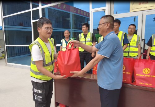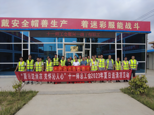 活动现场,师总工会慰问组为项目部一线管理人员和农民工发放了洗漱包、洗衣液等慰问品,同时就劳动者普遍关心的合同签订、工资发放、职工维权等方面进行了深入交流,介绍了如何运用法律援助来维护自身合法权益。并详细询问了项目建设进度及相关情况,关切询问一线工人工作生活情况等,鼓励建设者们要继续发扬“艰苦奋斗、开拓进取”的兵团精神,再接再厉,精心组织,科学施工,确保施工有序推进,圆满完成建设目标任务。