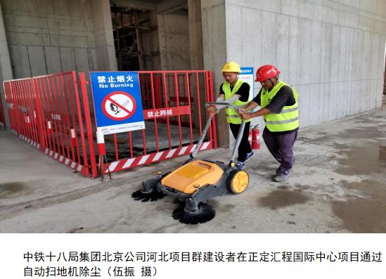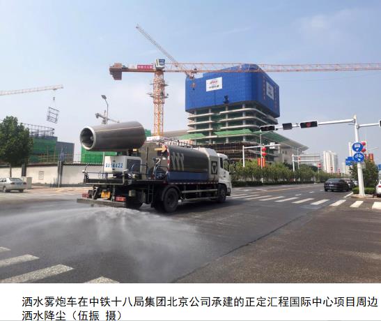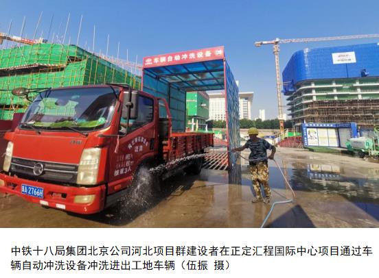 在河北项目群工地,送料车、拉土车频繁进出工地,工人紧张施工,但工地内外上却不见扬尘飞舞。原来一辆辆清扫车、洒水车、穿梭于场地内,不间断清扫路面。在工地的出入口,设有一个自动喷淋平台,车辆进出时会触动红外线感应装置,高压喷头可以清洗掉车身的污渍和轮胎上的淤泥,避免车辆带泥上路。