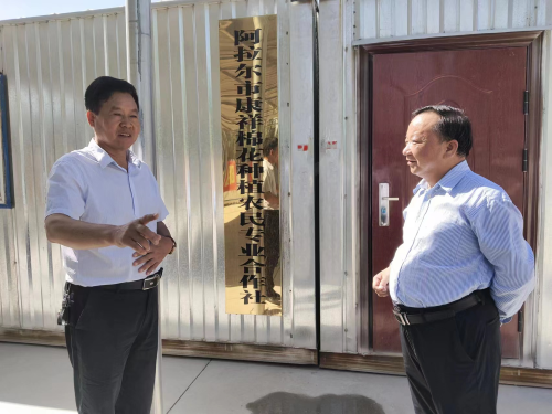 8月9日上午,新疆生产建设兵团第一师阿拉尔市九团党委副书记、团长刘光辉到九团十四连调研康祥棉花农民专业合作社发展运营情况。