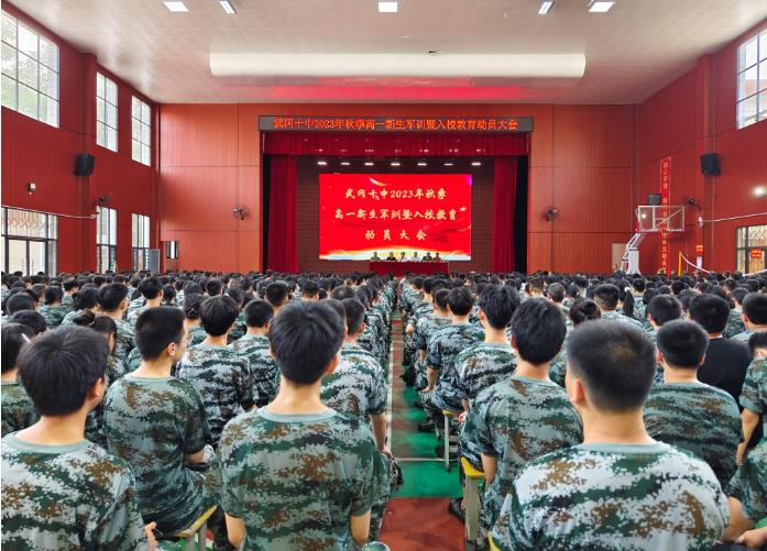 云台岭上吹响军训号角,高一新生开赴崭新征程。为加强学生爱国主义教育,扎实开展学生军事训练,培养学生的集体意识、拼搏意识、团队精神、吃苦精神,以饱满的精神状态迎接高中生活,8月23日上午,武冈十中在大礼堂隆重召开2023年秋季高一新生军训暨入校教育动员大会。