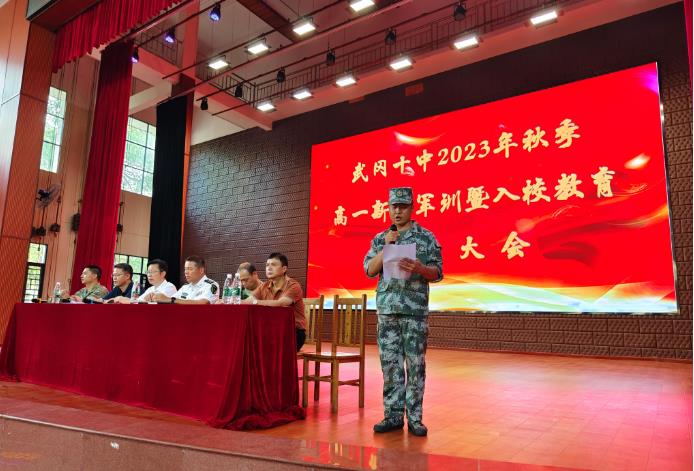 汲取人生智慧,铺就人生底色。大会在庄严雄壮的国歌中拉开序幕,学校党支部副书记夏文强主持大会并致欢迎词,他代表武冈十中党政团班子和全体师生,对全体新同学的到来表示热烈的欢迎和亲切地问候,对人武部领导莅临现场指导工作和各位军事教官一直关心支持学校的建设发展,表示衷心地感谢和崇高地敬意。