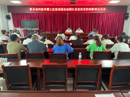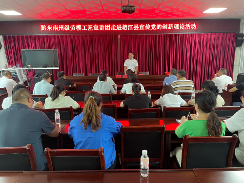 为扎实推动习近平新时代中国特色社会主义思想和党的二十大精神在职工群众中落地生根,8月31日,从江县总工会州级劳模宣讲团赴榕江县开展“中国梦·劳动美--凝心铸魂跟党走 团结奋斗新征程”主题宣传教育活动。本次活动得到了榕江县总工会的大力支持,安排了宣讲的会议室,召集基层工会会员100余人到场聆听宣讲。榕江县总工会党组书记、副主席王华主持宣讲活动,介绍了从江县州级劳模宣讲人欧工华同志的事迹。