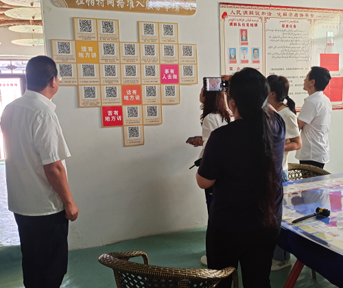在驻村第一书记熊靖的引导和讲解下,医疗保障局党员干部职工参观了“国学堂”。“国学堂”大院里,长江、黄河、诗经、史记、老子、中华福鼎等形式多样的中华优秀传统文化元素映入眼帘,整个院子充满了浓浓的中华传统文化气息,让在场的所有党员干部职工赞叹不已。