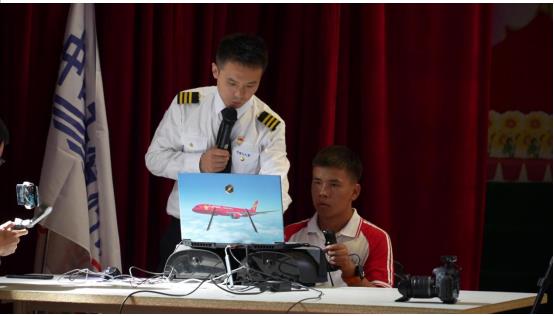 1600多名师生参加启动仪式。活动中,新疆阿克苏地区科协主席宏千姆·居曼代表阿克苏地区接受中国飞天梦科技志愿团授旗。志愿团专家开展了“我的飞天梦”航空航天发展史、从东方红走向星辰大海等互动式科普知识。随后,邀请学生模拟机长、空管、指挥员进行飞行任务互动游戏。活动还结合生动案例,开展飞机操纵要领、航空安全“模拟飞行”、全真1:1飞行模拟机操纵教学等互动式专题培训。