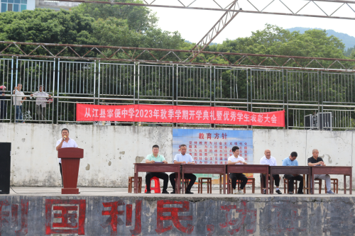 金秋九月,秋高气爽。为了促使学生树立理想,激发斗志,明确新学期的奋斗目标,增强师生们责任感和使命感,锐意进取,以良好的精神风貌在新学期的工作和学习中创造良好的开端。9月8日下午,从江县宰便中学在运动场举行2023年秋季学期开学典礼暨优秀学生表彰大会,全校一千一百余名师生参加,开学典礼由杨光仕副校长主持。