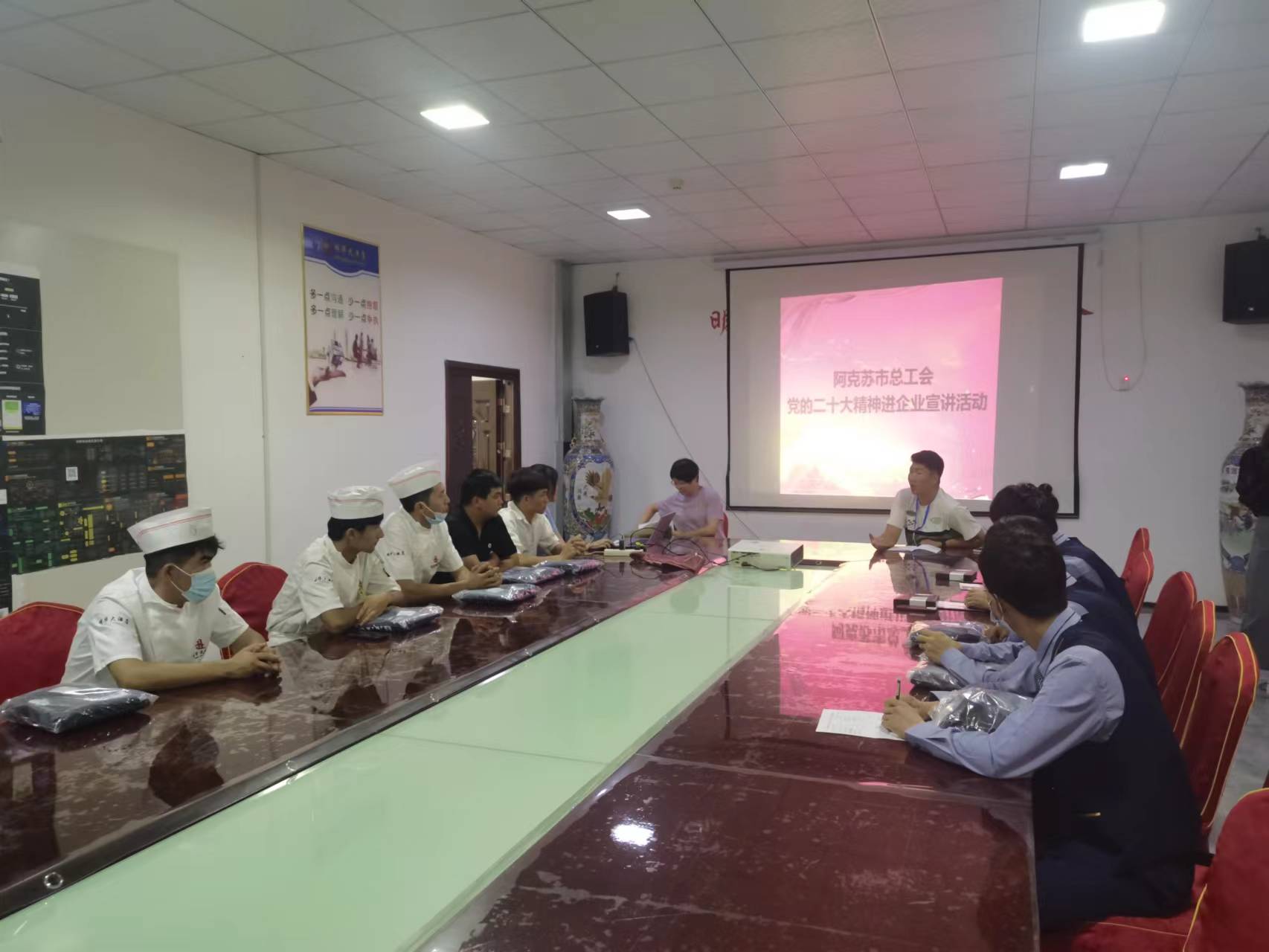 连日来,阿克苏市总工会采取多种形式进企业、进车间、进班组、进工地开展集中、面对面宣讲,切实推动党的二十大精神在各族职工群众中入脑入心、落地生根。本月共开展进企业宣讲53场次,覆盖企业干部职工520余人。