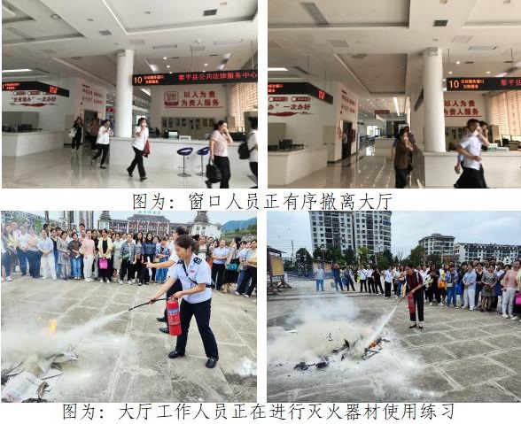 为贯彻落实全县消防安全警示教育会议精神,加强政务服务大厅安全管理,增强工作人员消防安全意识,提高自救防范能力,确保生命财产安全,2023年9月15日,黎平县政府政务中心组织开展消防演练活动,县政务服务大厅200余人参加活动。