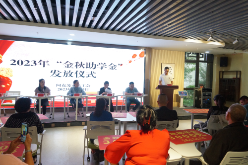 9月15日上午,阿克苏市总工会举办的2023年“金秋助学”金发放仪式在新时代实践文明中心顺利开展。本次发放仪式由市总工会党组成员、副主席、女工委主任黄媛同志主持,市工会党组副书记、主席阿孜古力·阿不都同志出席讲话,以及19位受助学生家长参加活动。