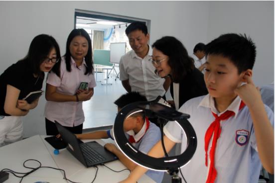 参观结束后,各位领导专家与教师代表、学生代表对话,就新课程理念下教学方式的突破、优化作业设计和“双减”政策下教师的工作量等问题进行了深入地探讨。